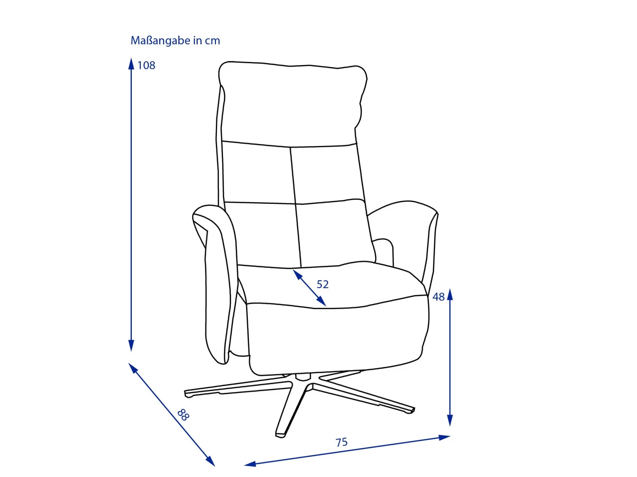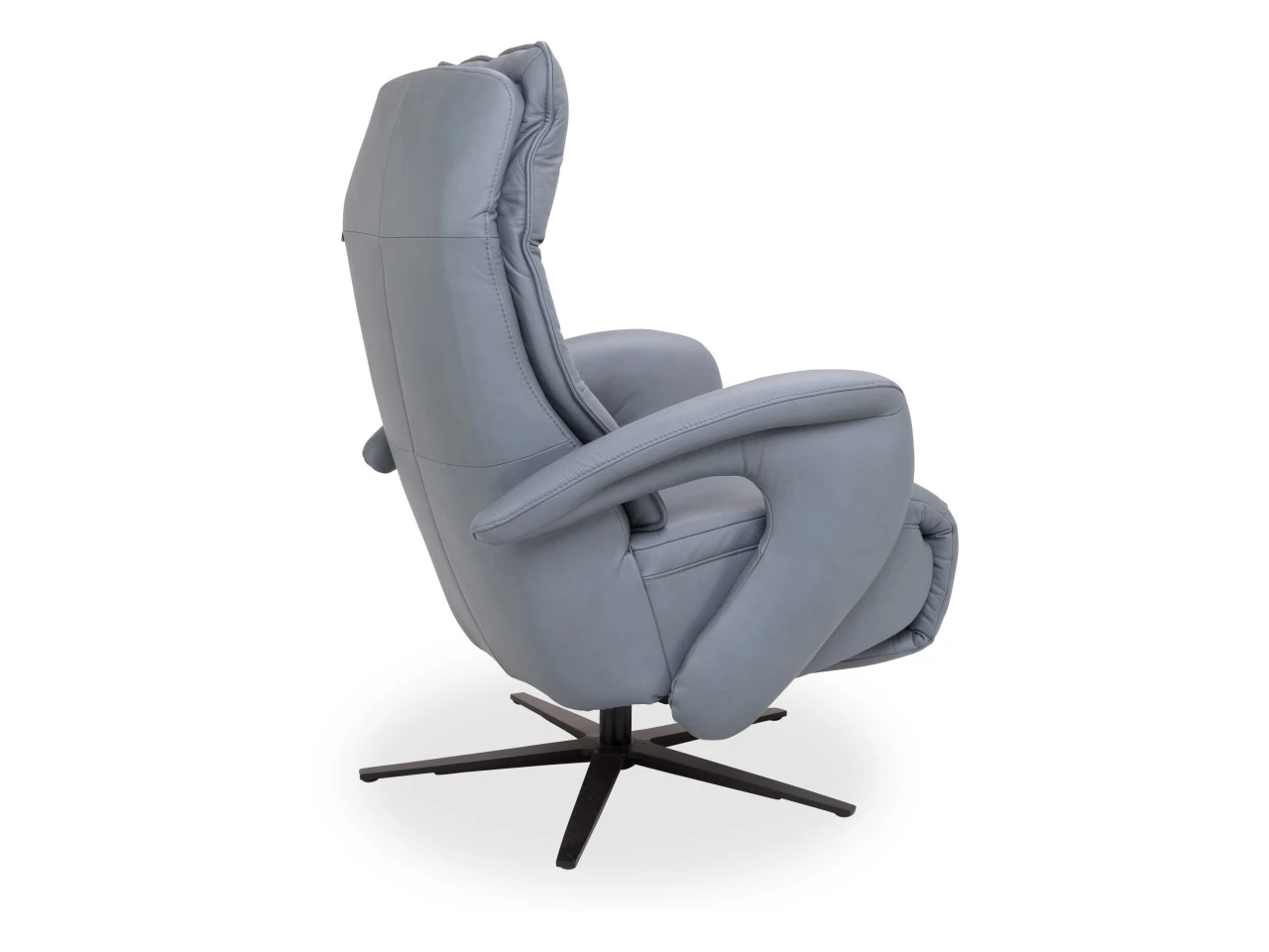 Dessin: echt Leder Vivre(58)Farbe Steel, Fuß: Sternfuß pulverbeschichtet schwarz Sitzqualität: F2 mittel, Sitzöhe ca. 45 cm, Sitztiefe ca. 52 cm, Ergonomie mittel, Handschalter links, bestehend aus: 1x Sessel mit manueller Kopfteilverstellung und Verstellung per Körperdruck, inkl. Zubehör: Sternfuß pulverbeschichtet schwarz AD4S
