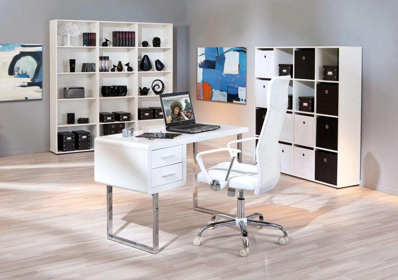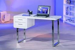 Bei diesem Schreibtisch bleiben wirklich keine Wünsche mehr offen. Den Schreibtisch können Sie wunderbar mit diversen Möbeln zusammenstellen. Ausgezeichnete Gestaltung ist immer gefragt – deshalb ist die geschmackvolle Gesamtoptik des Schreibtisches genau richtig für Ihr Home Office. Der Schreibtisch aus Holz hat die Farbe Weiß. Er weist ein Breitenmaß von 120 Zentimetern, eine Gesamthöhe von 76 Zentimetern sowie eine Tiefe von 55 Zentimetern auf. Ob zu Hause oder im Büro – dieser Schreibtisch sorgt überall für ein angenehmes Ambiente.
