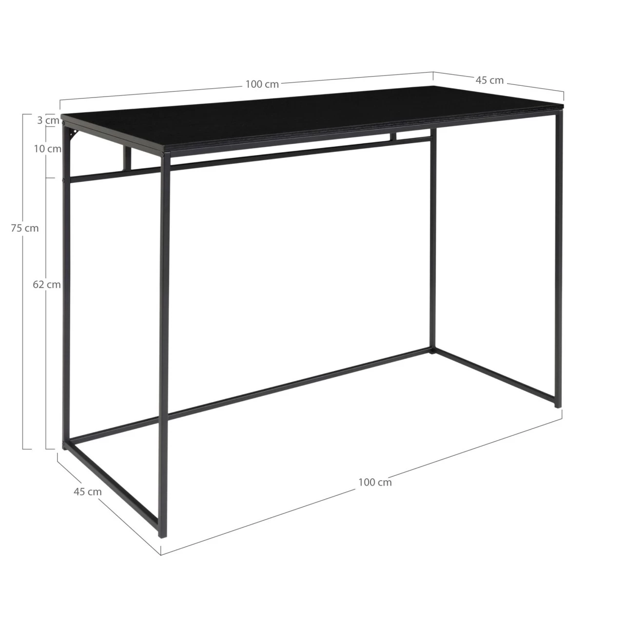 Dieser Schreibtisch sorgt für das perfekte Ambiente für produktives und effizientes Arbeiten. Das Modell VITA zeichnet sich aber nicht nur durch sein Design aus, sondern auch durch die Materialauswahl und ergänzt nahezu jedes Home Office durch sein schönes Erscheinungsbild. Der Schreibtisch kann dank seiner Bauart problemlos in verschiedenste Einrichtungsstile integriert werden. Er hat die Farbe Schwarz. Das Modell VITA weist eine Länge von insgesamt 45 cm, ein Breitenmaß von 100 cm und eine Höhenabmessung von 75 cm auf. Mit diesem Schreibtisch wird der Arbeitsplatz daheim dekorativ und praktisch eingerichtet.