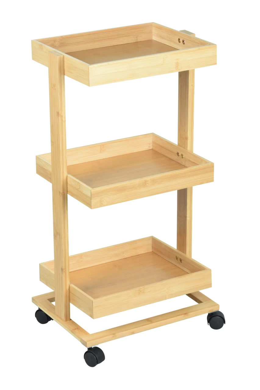 · Material: Bambus, mit 3 Tabletts und auf 4 Rollen