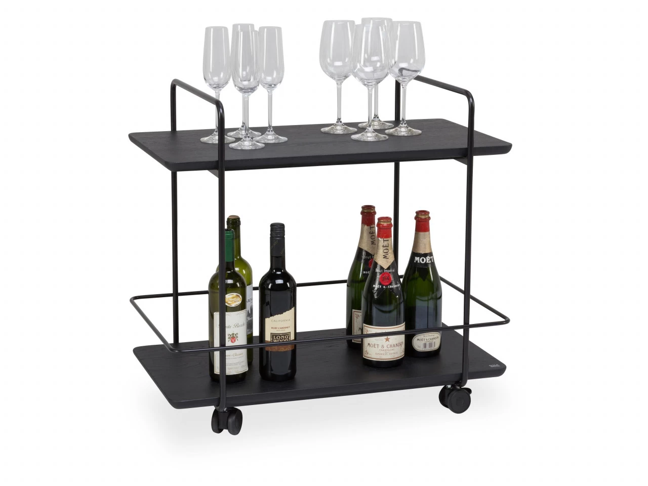 Der Servierwagen 931 aus dem Hause ROLF BENZ begeistert mit einem schicken und modernen Design. Die Platte ist aus schwarz gebeizter, massiver Eiche gefertigt und farblos lackiert. Passend dazu ist das Gestell aus glattem Stahl in mattem schwarz lackiert. Die Rollen ermöglichen ein kinderleichtes verschieben des Servierwagens.