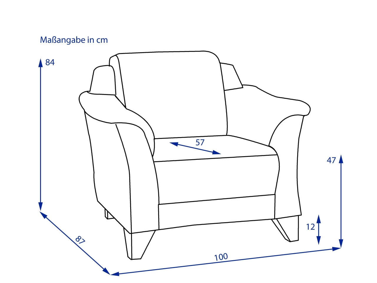 Dessin Stoff 815/08 grau, 100% PES, TKZ gemäß Herstellerangaben, Kontrastnaht F16 stein Sessel mit 2 AT -10, Federkern im Sitz Seitenteil A fest, Fuß F205 Moor Eiche, Rücken echt bezogen Funktionen und Zubehör auf Wunsch