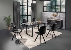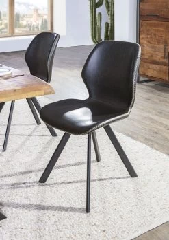 Bereichen Sie Ihren Essbereich mit dem stilvollen und modernen Stuhl CHILL. Die dynamisch geschwungene Sitzschale ist komfortabel gepolstert und mit einem geschmeidigen, schwarzen Kunstleder bezogen. Das filigrane Fußgestell ist aus schwarzem Metall gefertigt und harmoniert ansprechend mit dem ergonomischen Sitz. Die Sitzhöhe liegt bei 46 cm und die maximale Belastbarkeit liegt bei 120 kg. Mit zeitloser Eleganz wird dieser Stuhl in jedem Einrichtungskonzept zum besonderen Hingucker.