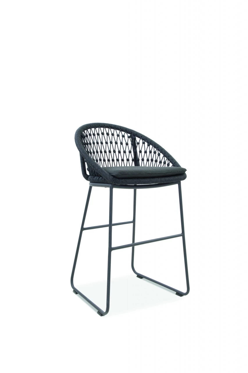 · Tresenstuhl KUTA Rücken und Seiten mit Kordelflechtung in Rautenoptik grau inkl. Sitzkissen, Bezug Praia charcoal, Gestell Aluminium pulverbeschichtet, Farbton anthrazit, 54×51,5 / 88 cm